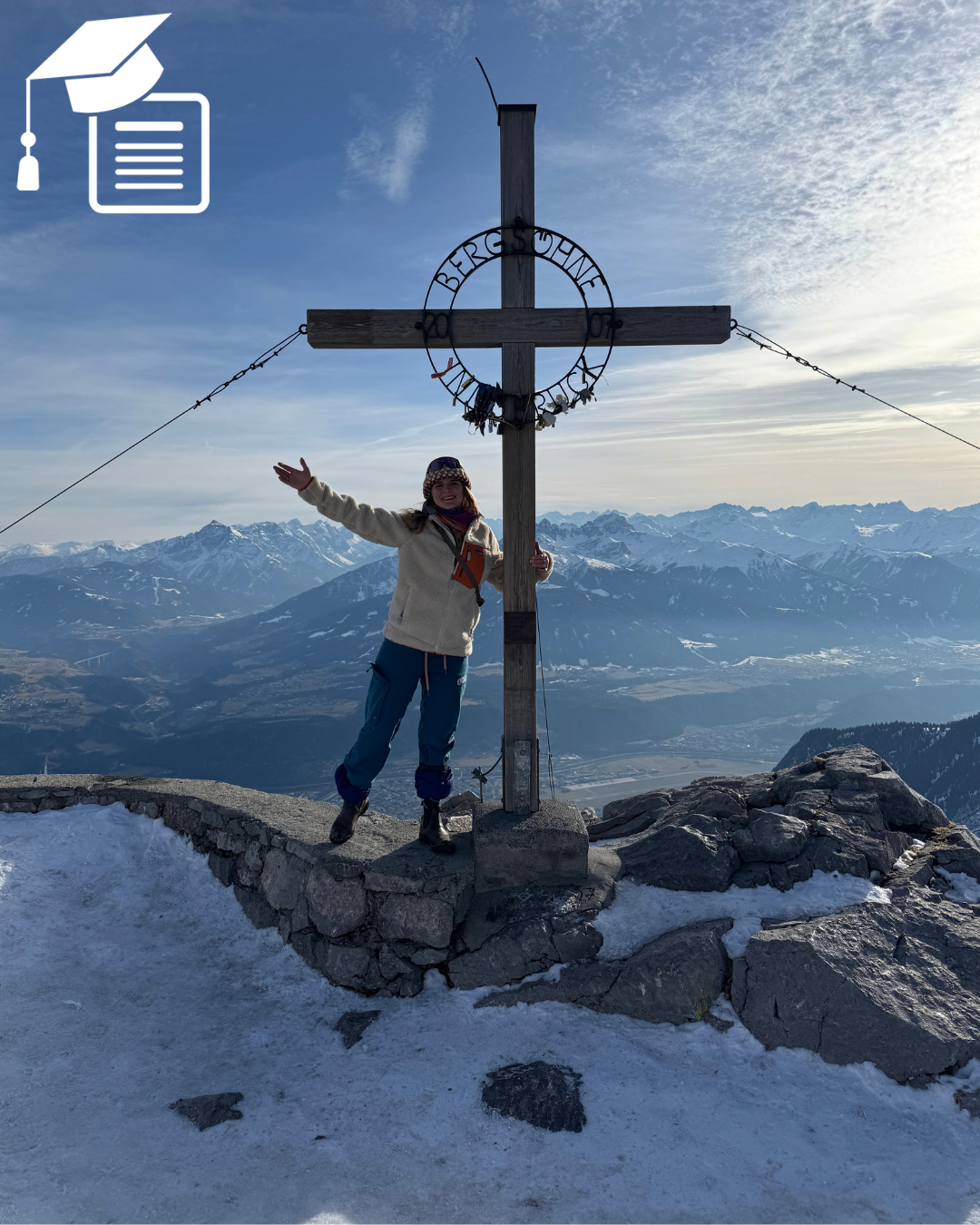 „Mein Erasmus+ Praktikum in Innsbruck hat mir nicht nur Berge und Schnee über den Winter geschenkt, sondern auch eine wunderbare Praxiserfahrung. Bereits 2022 hatte ich einen Winter in einem der umliegenden Täler gearbeitet und Innsbruck nur gelegentlich besucht. Damals wusste ich: Ich möchte unbedingt einmal direkt in dieser Stadt leben und arbeiten, um herauszufinden, ob sie sich langfristig als neuer Lebensmittelpunkt nach meinem Studium eignen könnte.